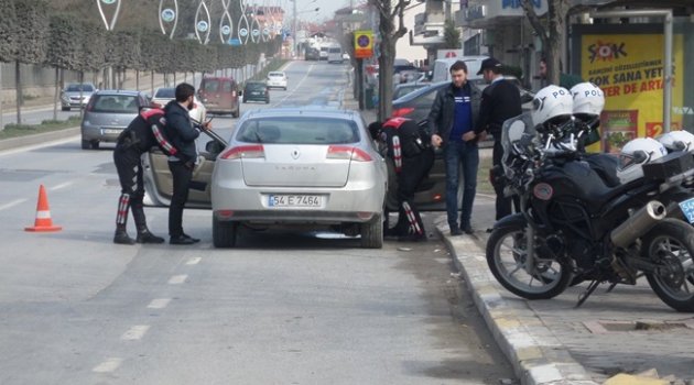 Sakarya İl Emniyet Müdürlüğü ekiplerinin yaptığı asayiş uygulamasında şüpheli görülen bütün araçlar arıyor.