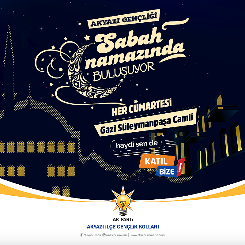 AK Parti Sakarya İl Gençlik Kolları şehrin tüm ilçelerinde gençleri “Sabah Namazı Buluşmalarına” davet ediyor.