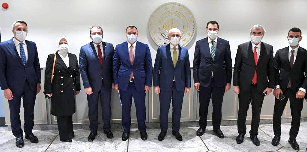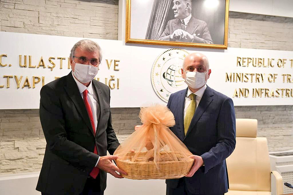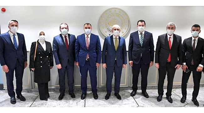 Bir dizi temaslarda bulunmak üzere Ankara’da bulunan Büyükşehir Belediye Başkanı Ekrem Yüce, Vali Çetin Oktay Kaldırım, AK Parti Genel Başkan Yardımcısı Ali İhsan Yavuz, MHP Grup Başkanvekili Levent Bülbül, AK Parti Milletvekilleri Çiğdem Erdoğan Atabek, Kenan Sofuoğlu ve Recep Uncuoğlu, AK Parti İl Başkanı Yunus Tever ile birlikte Ulaştırma ve Altyapı Bakanı Adil Karaismailoğlu’nu ziyaret etti.