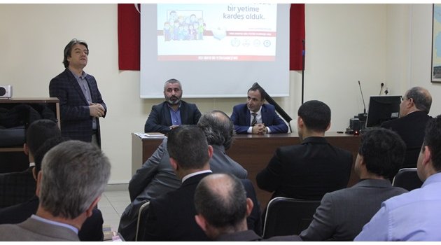 Toplantıda ilk olarak konuşan İl Milli Eğitim Müdür Yardımcısı ve HSBYKV Milli Eğitim Müdürlüğü proje koordinatörü Oğuzhan ÖZKAN, proje uygulama esasları ile ilgili bilgi aktarımında bulunarak projede ki esas amacımız çocuklarımıza en küçük yaştan itibaren iyilik ve merhamet duygusunu aşılamaktır dedi. Sakarya İHH Başkan'ı Sebahattin AYDIN, iyilik ve merhamet hareketi olarak kurulan İHH'nın ilk olarak 1992 yılında Bosna Savaşı sırasında Bosnalı yetimler ve aileleri ile ilgilenmeye başladığını, 2007 yılında Sponsor Destek Sistemini geliştirdiğini, 2013 yılında ise Milli Eğitim Bakanlığı, Diyanet işleri başkanlığı ve Eğitim Bir Sen ile imzalanan protokollerle "Her Sınıfın Bir Yetim Kardeşi Var" projesine başlandığını belirtti. İHH çalışmaları hakkında bilgi aktaran AYDIN; bu gün İHH 75 bin katarakt ameliyatı yaptırmış, çoğu Afrika da olmak üzere 5 bin su kuyusu açtırdığını, 27 yetimhane buna ilave olarak Suriye de 15 yetimhane yaptığını çok sayıda Kültür merkezi ve Camii gibi kalıcı eserler yaptırdığını belirttiSakarya İHH Yetim Birimi Başkan'ı Abdurrahman ŞAFAK ise dünyada herhangi bir korunma imkanına sahip olmayan 200 milyon yetimin olduğunu, bu yetimlerin organ mafyası, uyuşturucu baronları, insan kaçakçıları ve savaş ağalarının iştahını kabarttığını belirterek, biz bu yetimlere sahip çıkmak zorundayız, sahip çıkmadığımız her yetim ya bu grupların yada misyoner kuruluşların etkisine açık hale geliyor. Afrika'da adı Ahmet, Muhammed, Hüseyin olan Rahipler var, ulaşamadığımız her yetimden bizler sorumluyuz. Dünyada 4,5 milyon yetime kiliselerde destek sağlayan misyoner örgütler var İslam dünyası henüz bu rakamların çok uzağında orta vadede hedefimiz 1 milyon yetime kucak açabilmek dedi. Sakarya İHH Başkan'ı Sebahattin AYDIN projeye destek olan başta Sakarya Valimiz Hüseyin Avni COŞ beyefendi olmak üzere Milli Eğitim Müdürümüz Mevlüt KUNTOĞLU beye Yetim Çalışmalarına desteklerinden dolayı en derin teşekkürlerimizi sunuyoruz dedi.