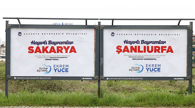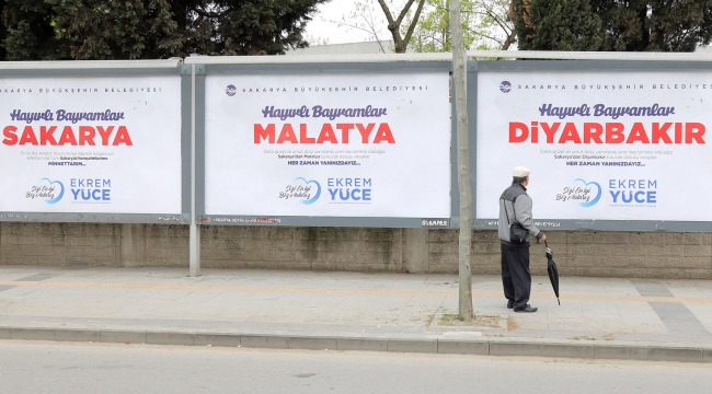 Sakarya, mübarek Ramazan Bayramı’nda asrın felaketini yaşayan 11 kardeş şehri unutmadı ve Büyükşehir Belediyesi kentin dört bir yanındaki bilboardlara şehirlerin isimleriyle “Hayırlı Ramazanlar” görselleri yerleştirdi.