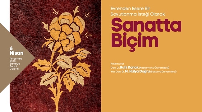 Sakarya Büyükşehir Belediyesi Kültür ve Sosyal İşler Dairesi Başkanlığı’ndan yapılan açıklamada, “Nisan kültür sanat Etkinlikleri ‘Evrenden Esere: Bir Soyutlanma İsteği Olarak Sanatta Biçim’ konulu söyleşi programı ile devam edecektir. 6 Nisan Perşembe günü sakarya Sanat Galerisi’nin ev sahipliği yapacağı programa Doç. Dr. Ruhi Konak ve Yrd. Doç. Dr. Hülya Doğru konuşmacı olarak katılacaklardır. Saat 16.00’da başlayacak programa tüm kültür sanat dostları davetlidir” ifadeleri kullanıldı.