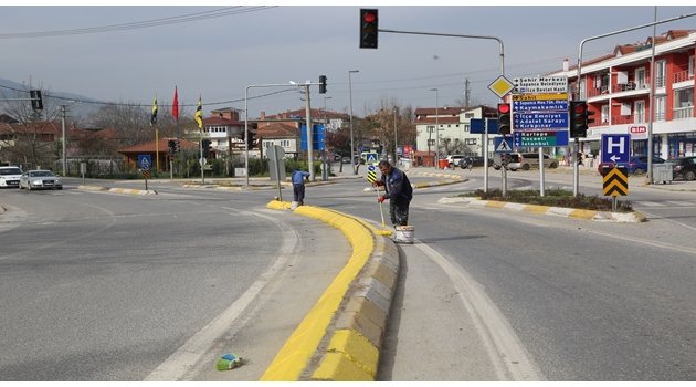 Sapanca Belediyesi Park ve Bahçeler Müdürlüğü tarafından ilçe girişlerinde bulunan sınırlama ve yol ayrım bordürleri, sarı beyaz renklerde boyanarak, ilçe girişleri güzelleştiriliyor.