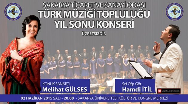 Sakarya Ticaret ve Sanayi Odası bünyesinde 2008 yılından bu yana faaliyetlerini sürdüren SATSO Türk Müziği Topluluğu, bu defa Melihat Gülses’le sanatseverlerin karşısına çıkmaya hazırlanıyor.Şef Öğretim Görevlisi Hamdi İtil yönetimindeki Türk Müziği Topluluğu yaz sezonu konseri, 02 Haziran Salı günü Sakarya Üniversitesi Kültür ve Kongre Salonu’nda saat 20.00’de gerçekleştirilecek.7 yılı aşkın süredir SATSO çatısı altında çalışmalarını yürüten ekip yaz konseri hazırlıklarına yoğun bir şekilde devam ediyor. Sakaryalıların yakından takip ettiği ve beğenerek dinlediği Türk Sanat Müziği Sanatçısı Melihat Gülses’in de konuk edileceği SATSO Türk Müziği Topluluğu sanatseverlere müzik ziyafeti verecek.Meclis Başkanı Akgün Altuğ ve Yönetim Kurulu Başkanı Kösemusul : “SATSO Türk Müziği Topluluğu Konserine tüm Sakaryalılar davetlidir. “ dedi.