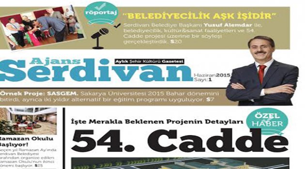 Haziran Ayı’nın ilk haftası itibari ileokuyucularıyla buluşan Serdivan Belediyesi’nin aylık ücretsiz kültür&sanat gazetesi “Serdivan Ajans”yayın hayatına merhaba dedi.İlk sayısı ile okuyucuların da beğenisini kazanan Serdivan Ajans;güncel hayatın içerisinden seçtiği konuları,farklı üslubu, dinamik kadrosu ve röportajları ilekültür ve sanat alanında önemli bir boşluğu dolduracak.SerdivanAjans’ınaylık olarak okuyucuyla buluşacağını belirten Serdivan Belediye Başkanı Yusuf Alemdar, yeni gazetenin kültür ve sanat noktasında referans merkezi olacağını ifade ederek hayırlı olsun temennisinde bulundu.Serdivan Ajans’ta farklı bir gazetecilik anlayışı sunacaklarını ifade eden Serdivan Belediye Başkanı Yusuf Alemdar,Serdivan Ajans’ın tabloidboyda ve 28 sayfa olacağını ayrıca ücretsiz olarak dağıtılacağını söyledi. Alemdar ayrıca gazetenin her sayısında, bir adet kitap ve film ekinin de yer alacağını belirtti.5 Haziran Cuma günü okurlarıyla buluşan gazetenin Serdivan Belediyesi’nden ve Serdivan Fikir ve Sanat Akademisi’nden temin edilebileceği belirtildi.