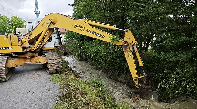 Serdivan Belediyesi, ilçede sabah saatlerinden itibaren etkili olan sağanak yağış sonrası yollarda oluşan hasarları onarırken, bir yandan da çamur olan noktaları temizliyor.