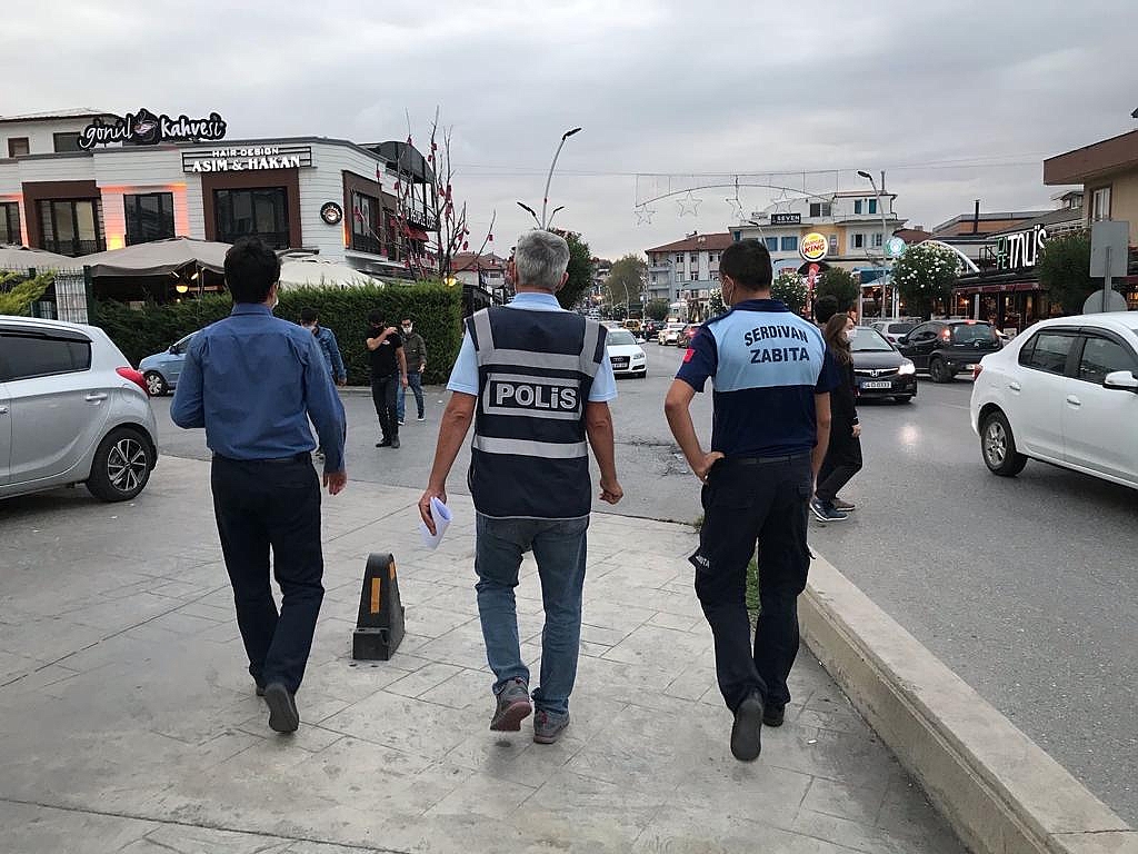 Serdivan Belediyesi, Covid-19 salgını kapsamında denetimlerini sıklaştırdı. Serdivan Belediyesi Zabıta Ekipleri araç ve yaya trafiğinin yoğun olduğu ana caddeler başta olmak üzere ilçe genelindeki maske, mesafe ve temizlik konularında vatandaşlara uyarılarda bulundu. Eksiklik tespit edilen işletmeler hakkında tutanak tutularak bir sonraki denetime kadar bu eksikliklerin giderilmesi istendi.Tüm İşletmelere Sıkı DenetimPandemi sürecinin başından beri denetimler konusunda taviz vermeyen Serdivan Belediyesi; alışveriş merkezleri, marketler, kuaför ve güzellik merkezleri, kafeler başta olmak üzere; taksi duraklarında, çay bahçelerinde, spor merkezlerinde denetlemelerine devam etti. Denetlemelerde zabıta ekiplerine polisler de eşlik etti