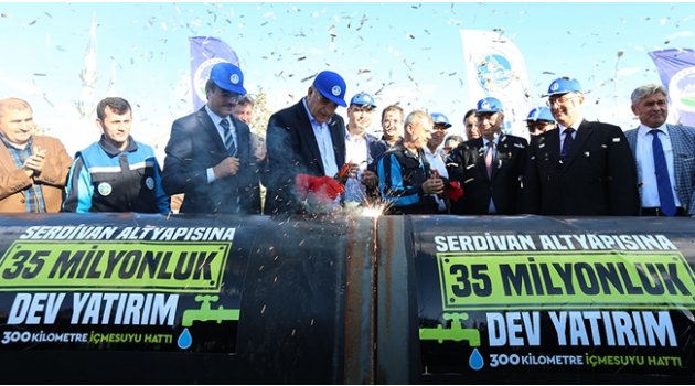 Serdivan’ın tüm içmesuyu altyapısını yenileyecek projede ilk kaynak töreni gerçekleştirildi. Başkan Toçoğlu, “Serdivan’a 300 kilometre içmesuyu hattı ve 5 bin metreküplük içmesuyu deposu inşa edeceğiz. Ayrıca 13 kilometrelik yağmursuyu hattıyla da ilçemizin yağmursuyu altyapısını güçlendireceğiz. Bu dev yatırımın toplam değeri 35 milyon liradır. Hayırlı olsun” dedi.