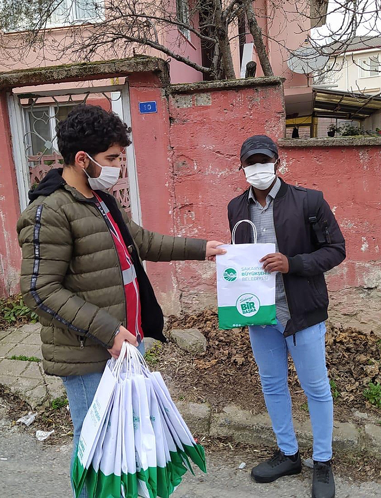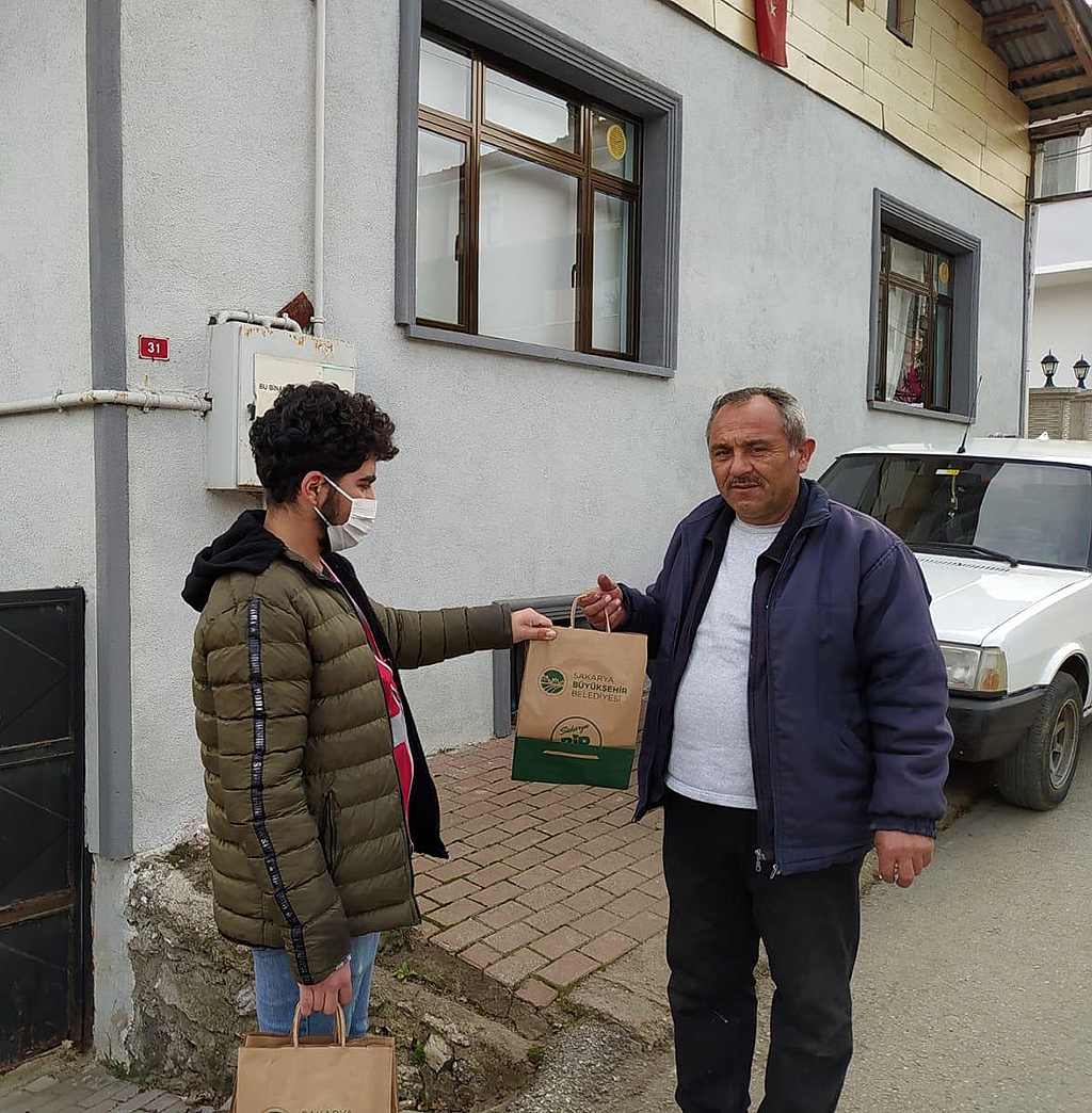 Büyükşehir Belediyesi maske üretimine ve dağıtımına hız kesmeden devam ediyor. Üretilen maskeleri şehrin her noktasında kapı kapı gezerek dağıtan ekipler son olarak Serdivan Kemalpaşa Mahallesi’nde bin 250 adet hijyen paketini vatandaşlara ulaştırdı.