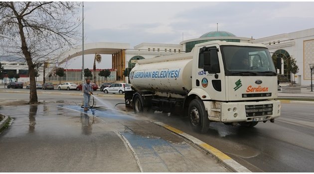 Serdivan Belediyesi temizlik ekipleri, ilçe merkezindeki ana caddelerle ve ara sokakları, toz ve çamurdan arındırıyor.