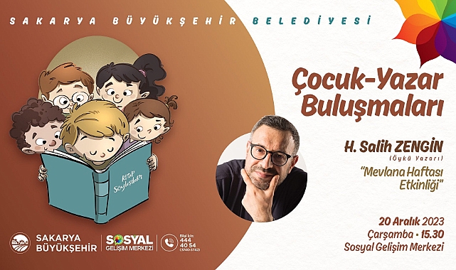 Sakarya Büyükşehir Belediyesi Sosyal Gelişim Merkezi’nde düzenlenen Çocuk-Yazar buluşmaları devam ediyor. Mevlana Haftası etkinlikleri kapsamında öykü yazarı H. Salih Zengin, çocuklarla bir araya gelecek. 20 Aralık Çarşamba günü SGM Konferans Salonu’nda gerçekleştirilecek etkinlik saat 15.30’da başlayacak.