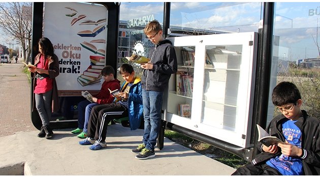 Sakarya Büyükşehir Belediyesi Sosyal Gelişim Merkezi kitap okuma kültürünün gelişmesine yönelik yeni bir çalışmayı hayata geçirdi. SGM hizmet binasının karşısında bulunan otobüs durağı yenilendi; mevcut durak artık ‘Durak Kütüphanesi’ olarak hizmet sunuyor. Sosyal Gelişim Merkezi Çocuk Kulübü üyesi öğrencilerinin otobüs bekleme sürelerini faydalı bir etkinliğe ayırması velilerden de tam destek aldı. Otobüs Beklerken Kitap Okuyoruz‘Beklerken oku giderken bırak’ sloganı ile çocuklarda kitap okuma kültürüne yönelik faydalı bir çalışmanın başlatıldığını aktaran Sosyal Hizmetler Dairesi Başkanı Davut Yüce, “Sosyal Gelişim Merkezi olarak çocukların okuma alışkanlıklarını geliştirmek için birçok proje gerçekleştiriyoruz. Durak Kütüphane adını verdiğimiz çalışma da bunlardan biriydi. İstedik ki çocuklarımız otobüs beklerken zamanlarını kitap okuyarak değerlendirsinler. Böylece inşallah kitap okuma kültürünün gelişmesi de sağlanacak” diye konuştu.