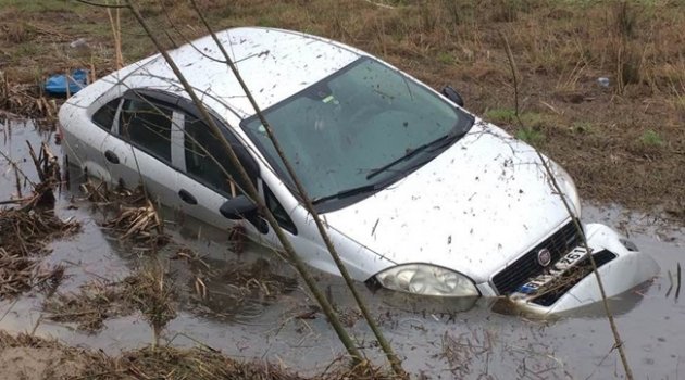 Sakarya'nın Karasu ilçesinde yoldan çıkan otomobil su birikintisine girdi. Kazada şans eseri yaralanan olmadı.