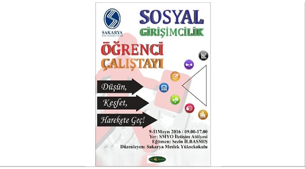 Sakarya MYO İletişim Atölyesi’nde9-11 Mayıs tarihleri arasında yapılacak çalıştayda, genel olarak kariyer planı yapmak isteyen ve geleceğe dair güvensizlik çeken MYO öğrencilerine yönelik olarak kendi potansiyelleri çerçevesinde nasıl fark yaratabileceklerine dair fikir edinmeleri amaçlanıyor.İlk kez gerçekleştirilecek olan çalıştaydaSakarya MYO Müdürü Yrd. Doç. Dr. İsmail Gümüş,MYO öğretim görevlileri Aykut Yılmaz, Gökhan Gürler,Selcen Vodinalı, Nalan Üstüntaş, eğitmenSezin İlbasmış ile doktora öğrencisi Hilal Kişioğlu görevli olarak yer alacak.Sosyal değişim, sosyal değer, sosyal girişimcilik gibi alanlarda dünyadan ve Türkiye’den örnekler, bir fikrin projelendirilmesi, proje döngüsü ve alana yönelik destekler gibi başlıkları içeren eğitim programı, aynı zamanda oyunlar, interaktif paylaşımları da katılımcıların kendilerine yönelik keşifler yaparken dünyadaki ortak sorunlarla ortak paydada buluşmasını sağlıyor.Eğitim sonrasında katılımcılardan toplanan geri dönüşlerle, bu alanda çalışan STK’lar ve diğer üniversitelerle paylaşılmak üzere bir rapor da hazırlanacak.
