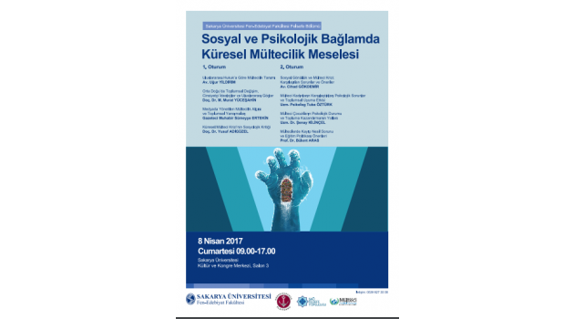 Sakarya Üniversitesi Fen-Edebiyat Fakültesi Felsefe Bölümü tarafından 8 Nisan 2017 tarihinde ‘Sosyal ve Psikolojik Bağlamda Küresel Mültecilik Meselesi’ isimli bir etkinlik düzenlenecek.