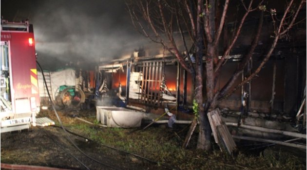 Sakarya’nın Akyazı ilçesinde bir tavuk çiftliği, çıkan yangında kullanılmaz hale geldi.