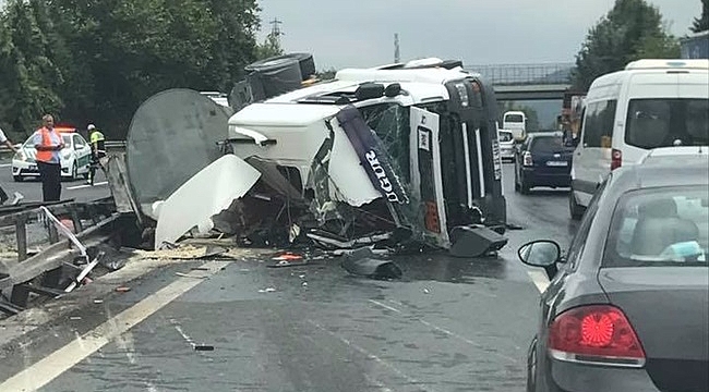 Sapanca'da Tem Otoyolunda tankerin devrilmesi sonucu sürücü yaralandı.