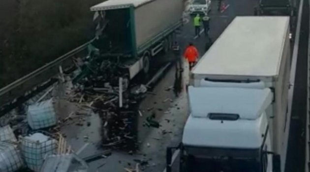 Tem Otoyolunda İki Tır Çarpıştı: 1 Yaralı