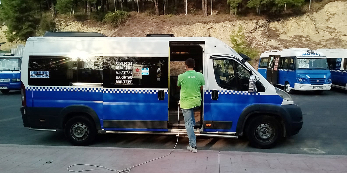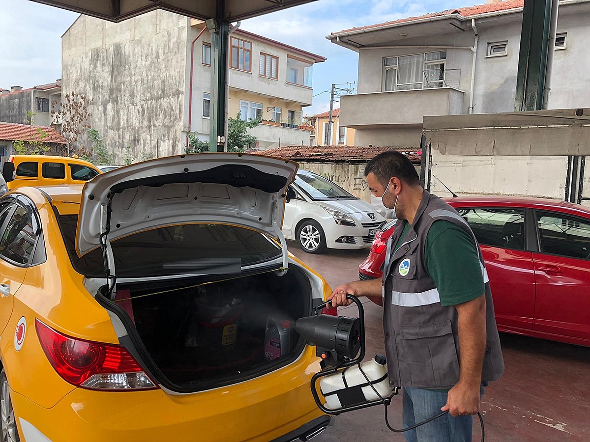 Büyükşehir Belediyesi tarafından sürdürülen koronavirüsle mücadele tüm hızıyla devam ediyor. Ulaşım Dairesi Başkanlığı’na bağlı dezenfekte ekipleri toplu taşıma araçları, ticari taksiler ile hizmet araçları titizlikle dezenfekte ediliyor.