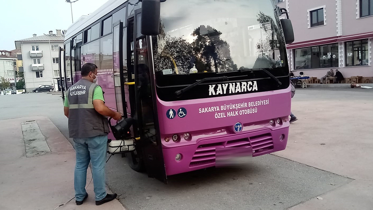 Sakarya Büyükşehir Belediyesi tarafından sürdürülen koronavirüsle mücadele tüm hızıyla devam ediyor. Bu kapsamda Ulaşım Dairesi Başkanlığı’na bağlı dezenfekte ekipleri toplu taşıma araçları, ticari taksiler ile hizmet araçları titizlikle dezenfekte ediliyor. Yapılan açıklamada toplum sağlığı için dezenfekte çalışmalarının devam edeceği ifade edildi.Çalışmalar devam edecekUlaşım Dairesi Başkanlığı’nca yapılan açıklamada, “Koronavirüs ile mücadele kapsamında dezenfekte çalışmalarımızı sürdürüyoruz. Vatandaşlarımızın ulaşımda kullandıkları toplu taşıma araçları da düzenli olarak dezenfekte işlemlerine tabii tutuluyor. Koronavirüsle mücadelemiz salgın süreci bitene kadar devam edecek. Vatandaşlarımızdan sosyal mesafe, maske ve hijyen kurallarına riayet ederek günlük yaşamlarını sürdürmelerini rica ediyoruz” ifadelerine yer verildi.