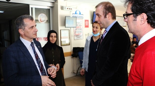 TOYOTASA Acil Yardım Hastanesi’nde incelemelerde bulunarak poliklinik ve servisleri gezen Kamu Hastaneleri Birliği Genel Sekreteri Doç. Dr. Hasan Salih Sağlam, hastanede yapılan düzenlemelerle ilgi bilgi aldı.