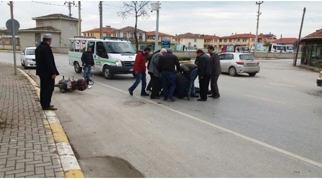 Sakarya’da otomobilin motosiklete çarpması sonucunda motosiklet sürücüsü hafif şekilde yaralandı.
