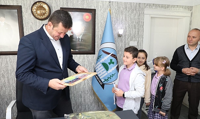 Akyazı Karaçalılık İlkokulu 3-B sınıfı öğrencileri öğretmenleri ve velileri ile birlikte Belediye Başkanı Bilal Soykan’ı ziyaret etti. Minik öğrencileri makamında konuk eden Başkan Bilal Soykan, çocuklarla uzun süre sohbet etti. Hayat Bilgisi dersi yerel yönetimler konusu için Başkan Soykan’ı ziyaret eden öğrenciler merak ettikleri konularda sorular yönelttiler ve keyifli vakit geçirdiler. Akyazı Recep Tayyip Erdoğan Spor Kompleksi’nde yüzme ve spor eğitimi aldıklarını söyleyen minik öğrenciler, Belediye Başkanı Bilal Soykan’a teşekkür ettiler.