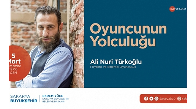 Sakarya Büyükşehir Belediyesi Mart kültür sanat Etkinlikleri ‘Oyuncunun Yolculuğu’ isimli söyleşi günü programı ile devam edecek. 5 Mart Perşembe günü Ofis Sanat Merkezi’nde gerçekleştirilecek etkinliğe Tiyatro ve Sinema Oyuncusu Ali Nuri Türkoğlu konuşmacı olarak katılacak. Kültür ve Sosyal İşler Dairesi Başkanlığı’ndan yapılan açıklamada, “Mart Kültür Sanat Etkinliklerimiz ‘Oyuncunun Yolculuğu’ isimli söyleşi programı ile devam edecek. 5 Mart Perşembe günü Ofis Sanat Merkezi’nde saat 19.00’da gerçekleştirilecek etkinliğe Tiyatro ve Sinema Oyuncusu ali nuri türkoğlu konuşmacı olarak katılacak. Tüm hemşerilerimiz programa davetlidir” ifadelerine yer verildi.