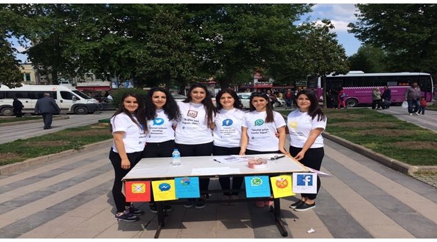 Sakarya Üniversitesi (SAÜ) Sosyal Hizmet Bölümü öğrencileri internet bağımlılığına farkındalık oluşturmak amacıyla broşür dağıtarak anket yaptı.