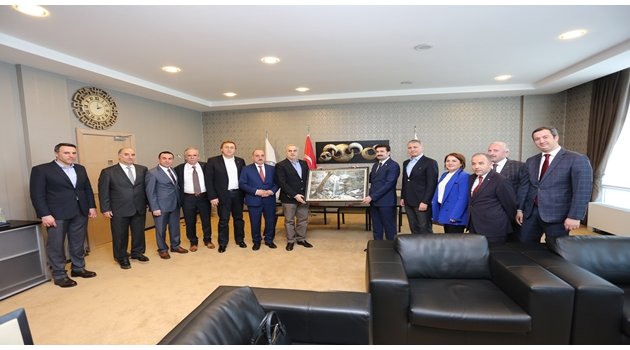 AK Parti İnsan Haklarından Sorumlu Genel Başkan Yardımcısı Sakarya Milletvekili Ayhan Sefer Üstün Sakarya Ticaret ve Sanayi Odası Yönetim Kurulu Başkanı Mahmut Kösemusul’u makamında ziyarette etti.Türkiye Uluslararası Güven Ortamının Merkezi OlacakSöz konusu iade-i ziyarete satso Meclis Başkanı A. Akgün Altuğ, AK Parti İl Başkanı Fevzi Kılıç ve Yönetim Kurulu Üyeleri iştirak etti.Sakarya ve ülke gündemine ilişkin değerlendirmelerin yapıldığı ziyarette konuşan SATSO Yönetim Kurulu Başkanı Mahmut Kösemusul, ‘’2023 vizyonunun parlayan yıldızı Sakarya’mız olacaktır. SATSO olarak üyelerimizin menfaati doğrultusunda sorunlarına yönelik bürokrasi ile aralarında köprü vazifesindeyiz. Hizmet için bu makamlardayız. Bugün ülkemizde oluşturulan istikrar ortamı iş dünyası adına büyük önem taşıyor. Sermaye ürkek kuş gibidir ve istikrarın olmadığı ortamda ekonomik büyümeden söz edilemez. İstikrar ortamından memnunuz, ülkemizi terör illetinden kurtarırsak uluslararası güven ortamının merkezi olacağız. ” diye konuştu.Yerli Oto’da tüm işaretler Sakarya’yı GösteriyorBaşkan Kösemusul konuşmasının devamında otomotiv üssü Sakarya çalışmaları ile ilgili değerlendirmede bulunarak BMC’nin Karasu’daki yatırımının Sakarya’nın otomotiv üssü olma yolunda güçlü bir referans olarak eklendiğini dile getirdi. Kösemusul,“Otomotiv Şehri Sakarya hedefiyle Sakarya Vites Yükseltiyor dedik ve bu doğrultuda önemli çalışmalar yaptık, paydaşlarımızla gayretlerimiz oldu. Şehrimizin potansiyeli ve değerleri ile stratejik yatırımlara ev sahibi olacağını her fırsatta dile getirdik ve Sakarya’mızı bu yatırımlara hazırlamak için hep birlikte yoğun bir çaba gösterdik. Ve bugün BMC gibi bir dünya markasının Sakarya’yı tercih etmesi çok önemli bir gelişmedir. Yatırımcılar iyi matematik yapar, bu anlamda otomotiv yatırımlarında bugün tüm işaretler Sakarya’yı gösteriyor, bu oldukça memnuniyet verici. Yerli Otomobil üretimi konusunda da altyapı, donanım ve avantajlarımız katlanarak artıyor, yerli üretim konusunda ülkemizin gelişim göstermesi ve bu ilerlemenin baş aktörünün Sakarya olması için gayretlerimiz güçlü lobimizle birlikte devam edecektir.” şeklinde konuştu.