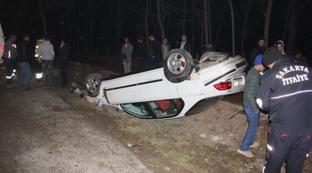 Sakarya'nın Adapazarı ilçesinde virajı alamayan otomobil takla attı. Otomobilde bulunan 2 kişi yaralandı.