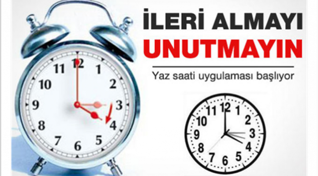 Yaz saati uygulaması 27 Mart Pazar gece yarısı 03:00 itibarı ile başlayacak.