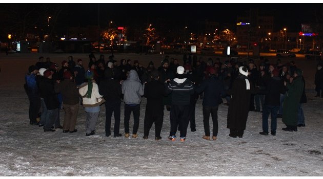 2016 yılına zikir çekerek giren dergah üyeleri, soğuk havaya aldırmadan zikri yarım saat sürdürdü.