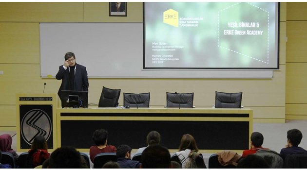 Sakarya Üniversitesi’nde İnşaat Mühendisliği Topluluğu tarafından düzenlenen ‘’Yenilenebilir Enerji’’ isimli söyleşiye ERKE Green Akademisi’nden Mert Güller konuşmacı olarak katıldı.Söyleşide sürdürülebilir bina tasarımından bahseden Güller, ‘’Sürdürülebilirlik, bir şeyin nesiller boyu devam edebilmesini sağlamaktır’’ dedi. Güller, yenilenebilir enerjinin bugünün ihtiyaçlarını geleceği de düşünerek karşılayabilmek olduğunun üzerinde durdu.Yeşil Bina Sektörü Türkiye’de İki Kat Daha Hızlı BüyüyorDünya’da 2000’li yıllarda ortaya çıkan küresel ısınma sebebiyle yeşil bina projesinin dünya gündemine geldiğini belirten Güller, ‘’İngiltere’de bir yapı sektörü, inşaat sektörünü geliştirmek için bir çalışma geliştiriyor ve yeşil bina çalışması bu sayede başlıyor’’ şeklinde konuştu.Yeşil binanın elektrik kökenli bir iş olduğunu vurgulayan Güller, ‘’ Yeşil bina sektörü Türkiye’de iki kat daha hızlı büyüyor. Türkiye’nin ilk yeşil binası; Siemens Yeşil Binası’dır’’ diye konuştu. Yeşil bina olmak için önceliğin enerji tasarrufu olduğuna dikkat çeken Güller, ‘’Program aracılığıyla evin enerji modellemesi yapılıyor ve hesaplanıyor. Bu sayede enerji verimliliği sağlanabiliyor’’ ifadelerini kullandı.Söyleşi sonunda Mert Güller, öğrencilerin sorularını yanıtladı.