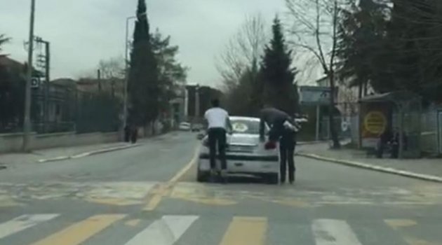 Adapazarı'nda hızlı giden bir otomobilin arkasına takılan 3 patenci genç yürekleri ağızlara getirdi.