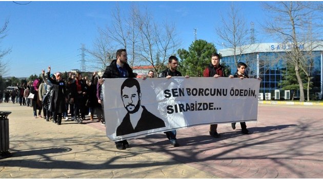 Ege Üniversitesi’nde karşıt görüşlü öğrenciler arasında çıkan kavgada hayatını kaybeden Fırat Çakıroğlu için Sakarya Üniversitesinde bir yürüyüş düzenlendi.