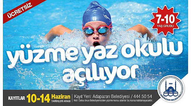 Adapazarı Belediyesi tarafından her yıl çocuklara yönelik düzenlenen ücretsiz yüzme kursu kayıtları devam ediyor. Son kayıt tarihi ise 14 Haziran Cuma.