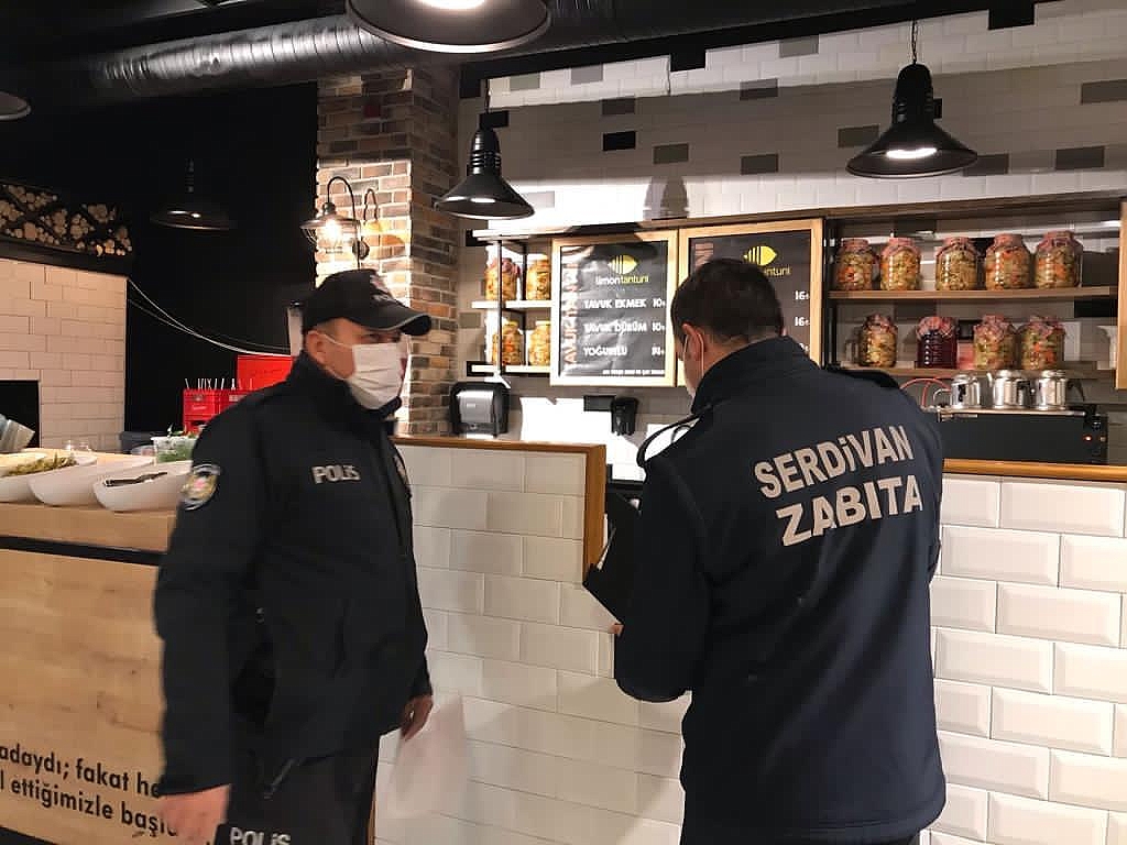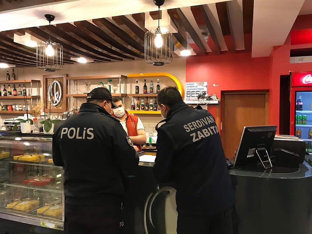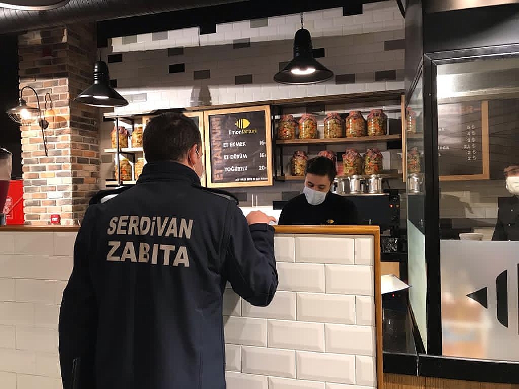 İçişleri Bakanlığı’nın koronavirüs salgını ile ilgili açıkladığı yeni tedbirler kapsamında serdivan Belediyesi Zabıta Müdürlüğü ekipleri, emniyet birimlerinin de katıldığı denetimlerde tüm cafe, restoran, lokanta, pastane, fırın ve pazar yerlerini denetledi. Yeni genelgede yayınlanan tedbirler hakkında esnafı bilgilendiren ekipler, işletmeleri tek tek dolaşarak hijyen, maske ve eldiven kullanımı, ürünlerin son kullanma tarihleri gibi konularda denetim gerçekleştirdi. Son günlerde artan vaka sayısına bağlı olarak alınan yeni kararlara uyulması noktasında Serdivan genelinde ilgili kurumlarla birlikte denetimlere devam edileceği belirtildi.