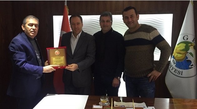 Ziyaret sonunda ASKF Başkanı Yaşar Zımba, amatör spor’a yaptığı desteklerinden ötürü Belediye Başkanı Murat Kaya’ya plaket sundu.